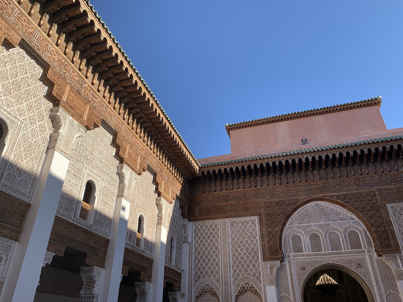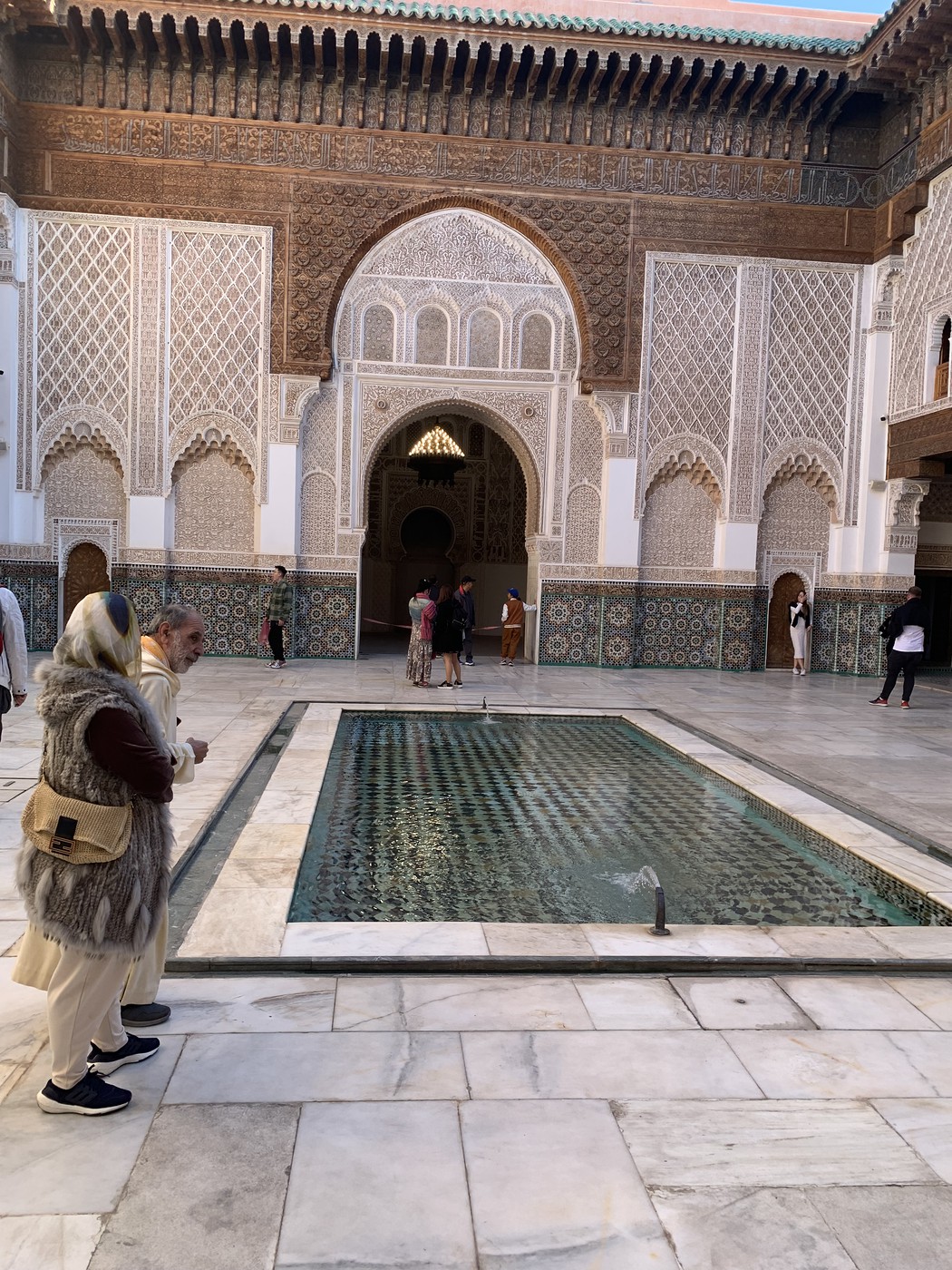 Случайно попадаем к медресе «Бен Юсеф». XVI, примерно, век, как и другие важные строения города. Стиль тот же, это радует.